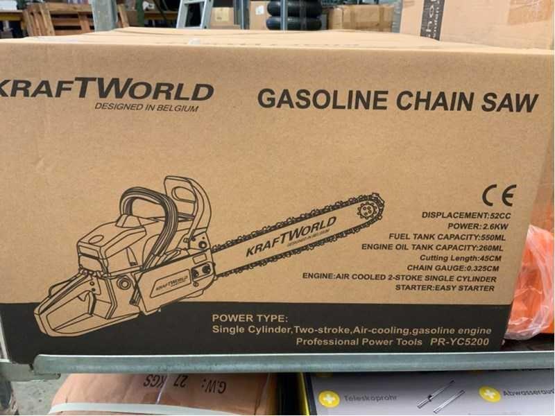 zaagblad afm. L: 500 mm; motorvermogen: 2,00 kW; omschrijving: 52 cc benzinemotor; met toebehoren; met kettingbescherming; ongebruikt en verpakt