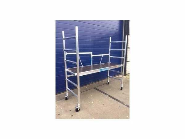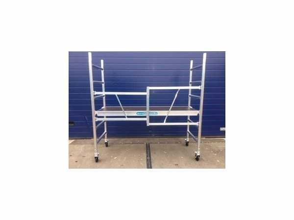 platform afmeting L: 1900 mm; platform afmeting B: 750 mm; stapelbaar; werkhoogte circa 3 meter; met 4 geremde zwenkwielen; verhoogbaar; voldoet aan NEN-EN 1004; TÜV gecertificeerd; ongebruikt