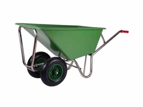 met extra stevige kunststof bak; met dubbele kunststof wielen met rollager en luchtband; ongebruikt