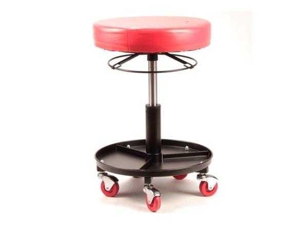 met 5 stabiele zwenkwielen; in hoogte verstelbaar van 45-57 cm zithoogte; met opbergplaatsen; met reinigbare bekleding en stevige polstering; ongebruikt en verpakt
