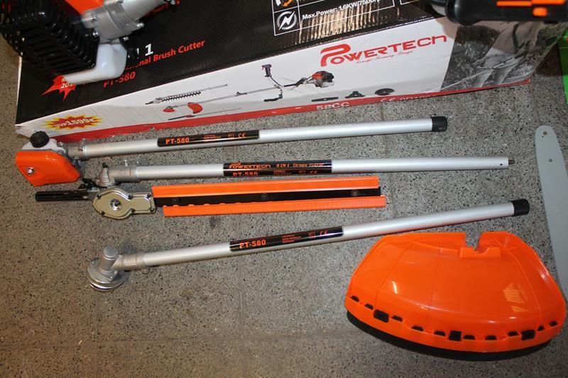 Multi tuin machine 6 in 1, bosmaaier, heggenschaar, kettingzaag en kantenmaaier ineen, makkelijke klik verbinding voor wisselen van items, nieuw in doos