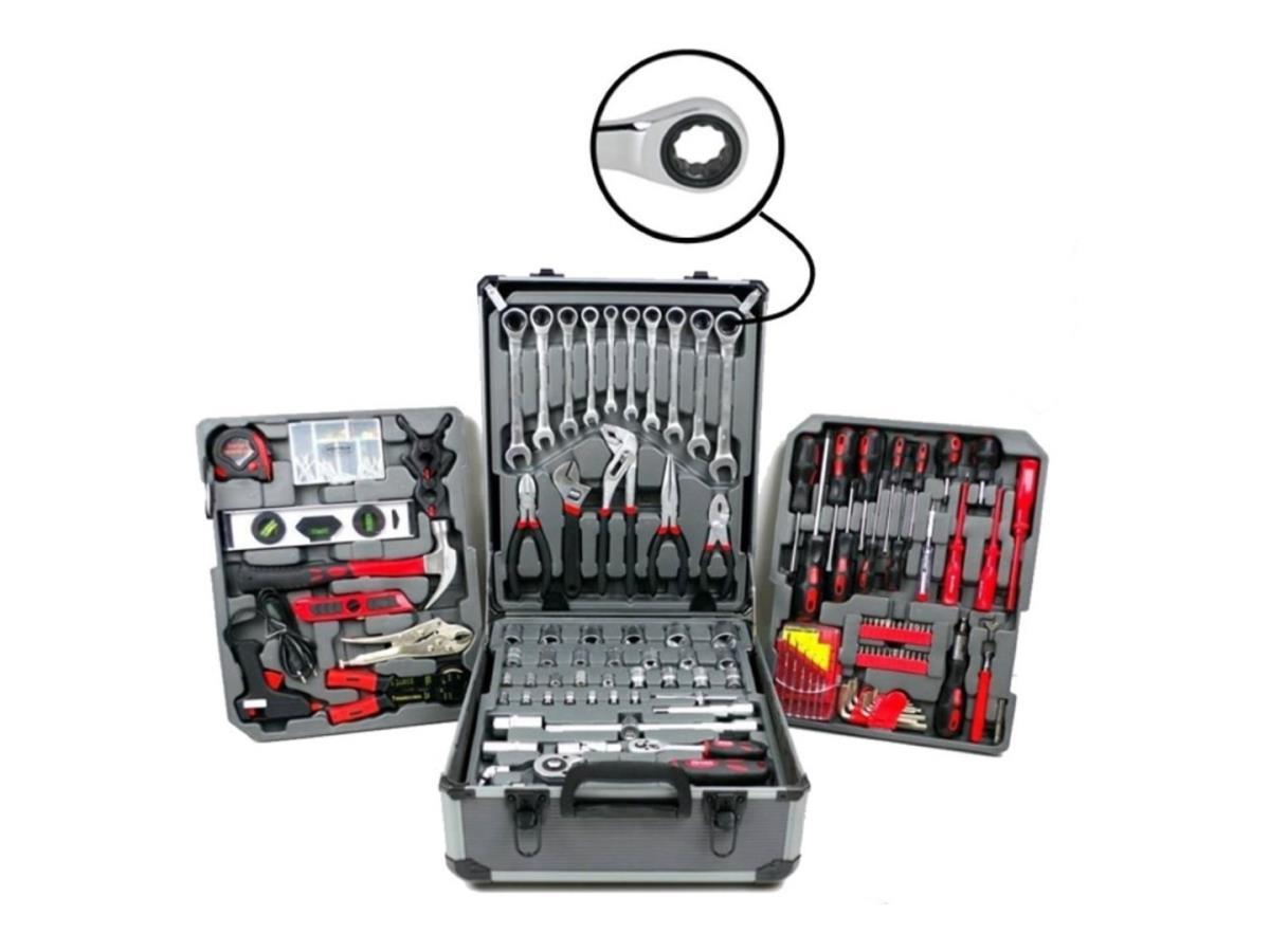 Gereedschapstrolley 299 delig, complete set met ringratel sleutels, in aluminium koffer met wielen en uitschuifbaar handvat, nieuw in koffer