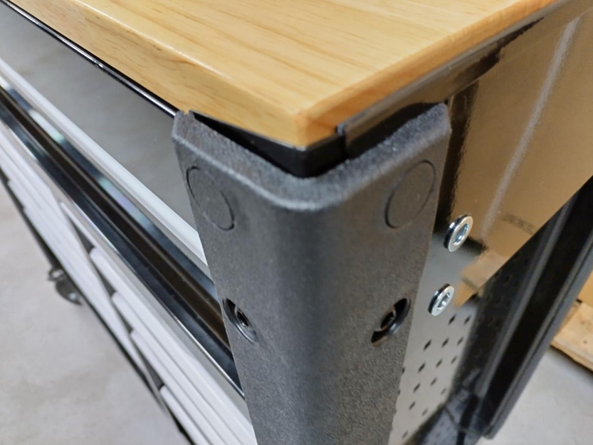 Unieke grote gereedschapswagen met 12 laden waarvan 10 laden gevuld met kwaliteits gereedschap, degelijke wagen met lades en wielen lopend op kogellagers, Houten bovenblad voor gebruik als werkbank, 1 meter breed,1 meter werkhoogte, kunstof bescherming aan randen, gewicht ca 120 kg, nieuw in doos