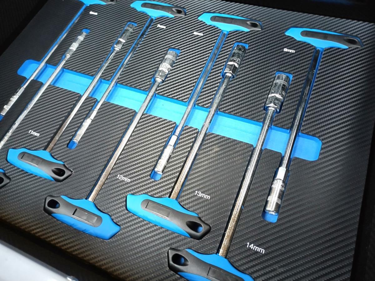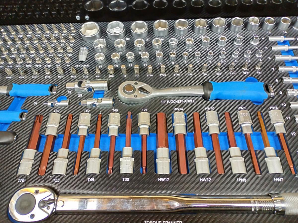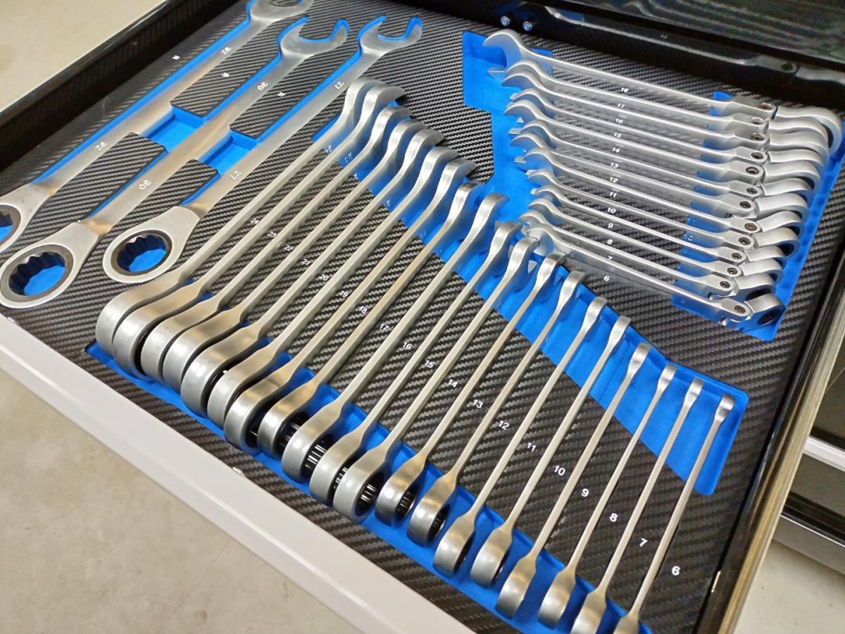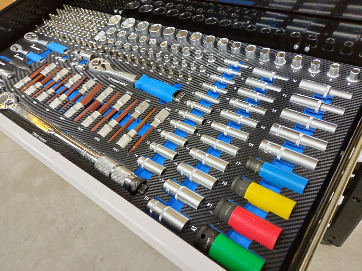 Unieke grote gereedschapswagen met 12 laden waarvan 10 laden gevuld met kwaliteits gereedschap, degelijke wagen met lades en wielen lopend op kogellagers, Houten bovenblad voor gebruik als werkbank, 1 meter breed,1 meter werkhoogte, kunstof bescherming aan randen, gewicht ca 120 kg, nieuw in doos