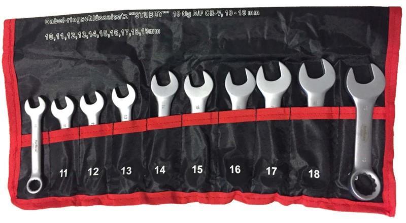 Stubby, korte steek ringsleutelset, 10-19mm