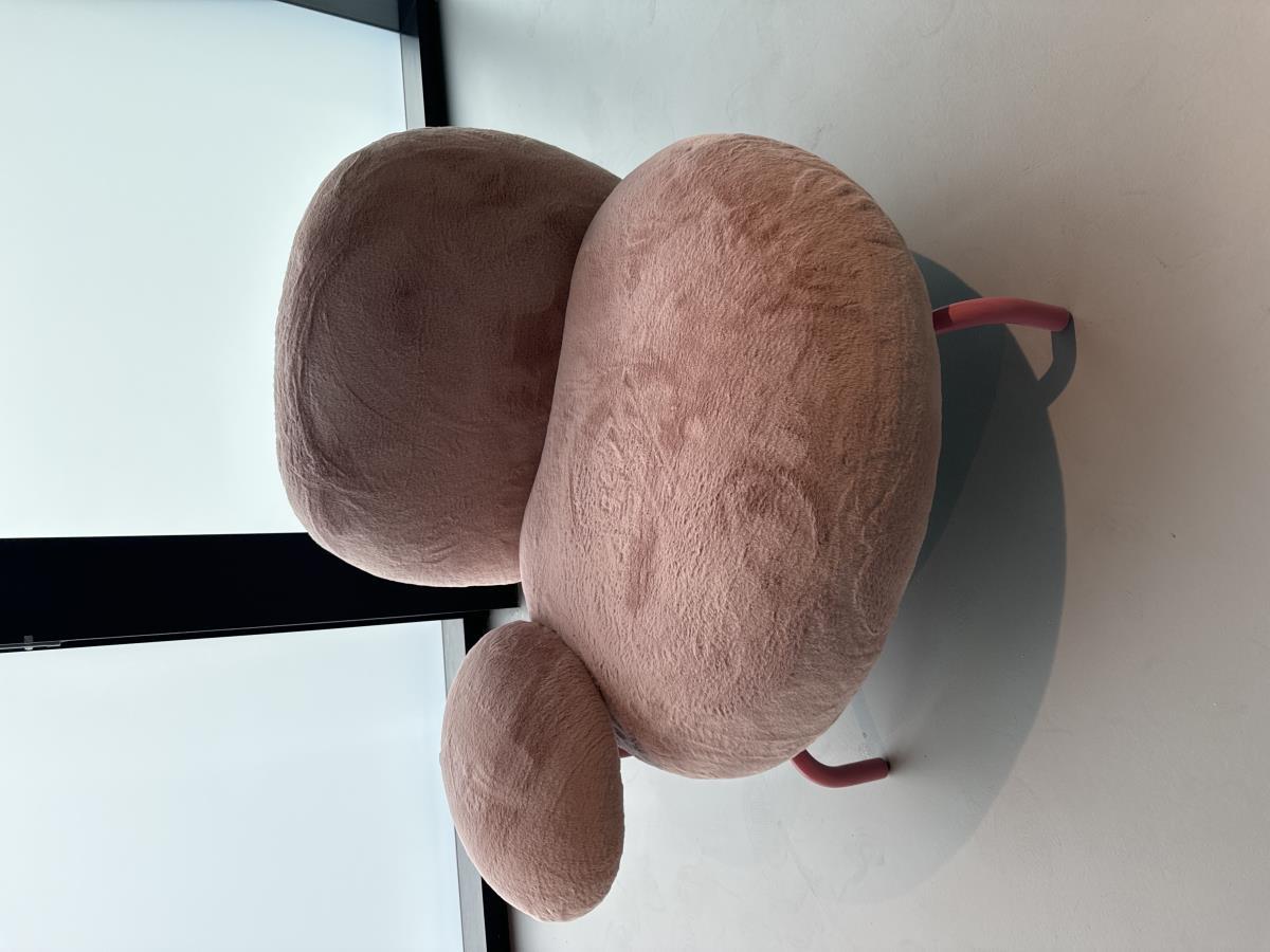 1x Design fauteuil, roze poten, stof, model: PFDK-roos, kleur: roos, afmetingen: 112x102x78cm