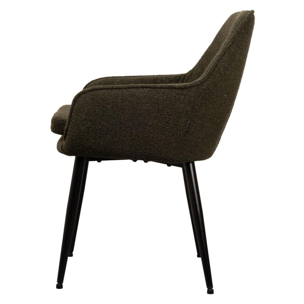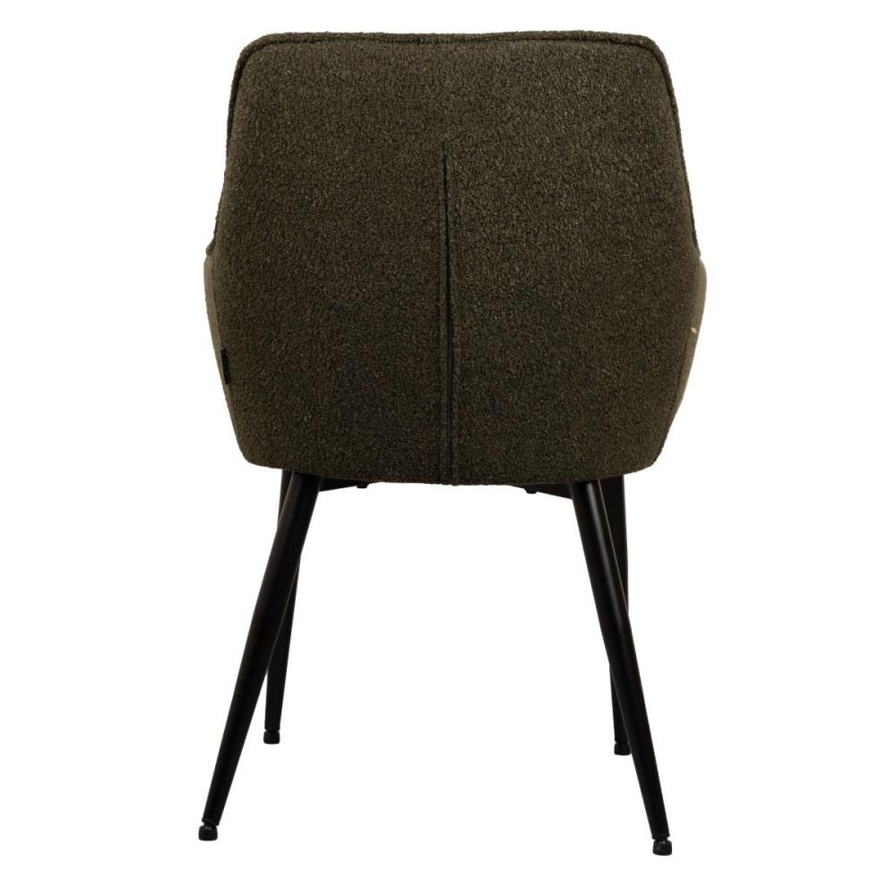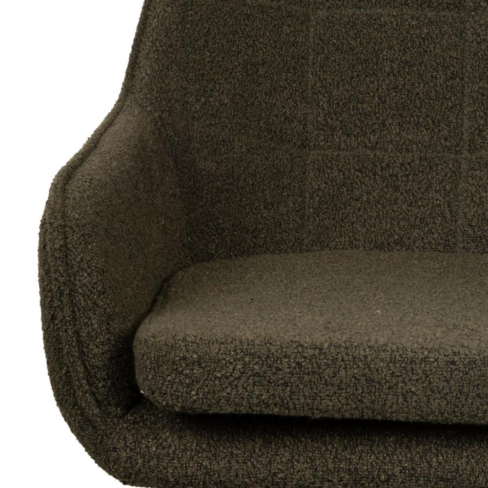 6x Design eetkamerstoelen, model: 21002-08, kleur: groen, boucle stof, geruit gestikt met verzwaard en gecoat onderstel