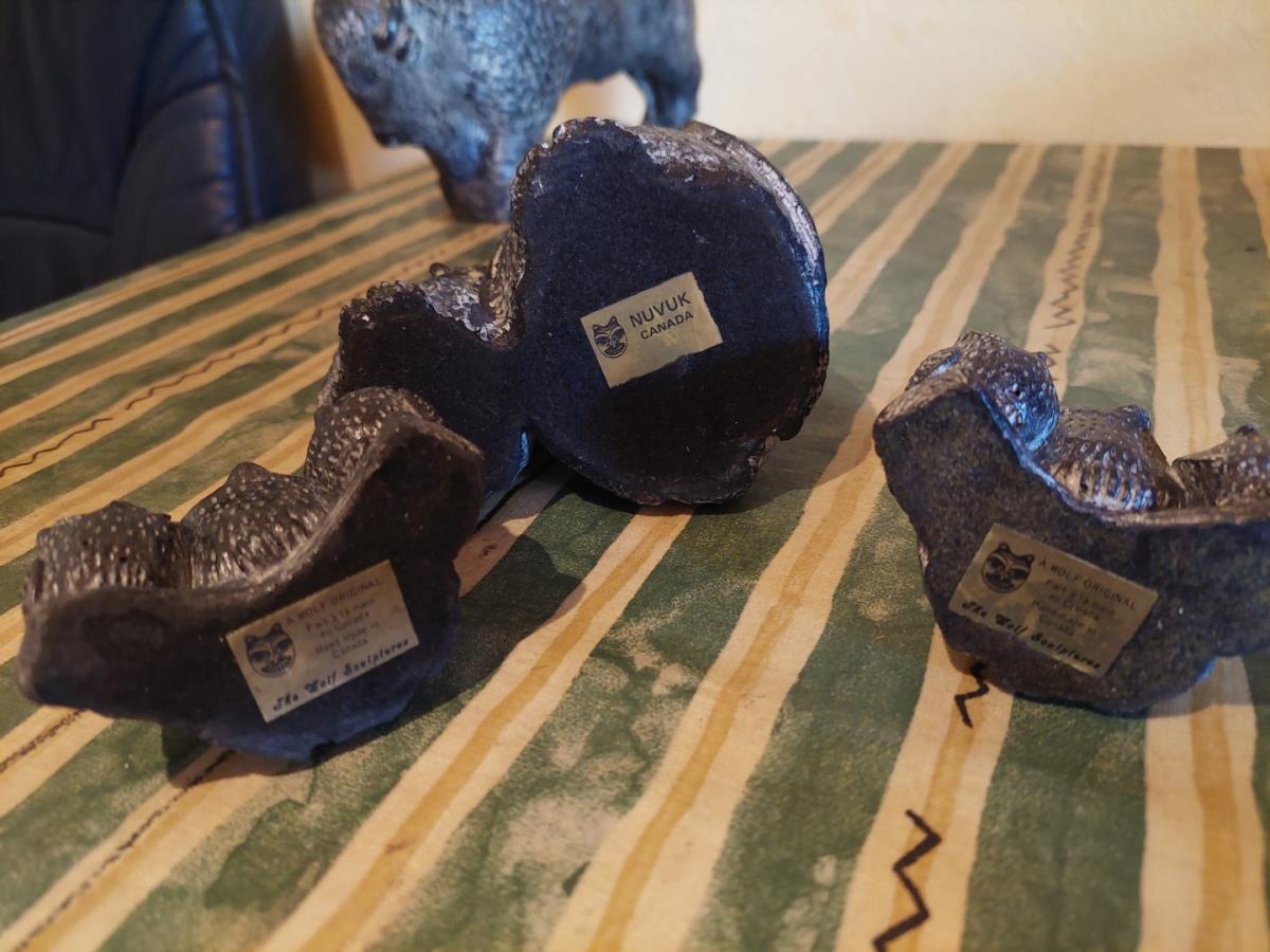 9 Spekstenen Inuït Dierenbeeldjes A WOLF ORIGINAL, THE WOLF SCULPTURES
