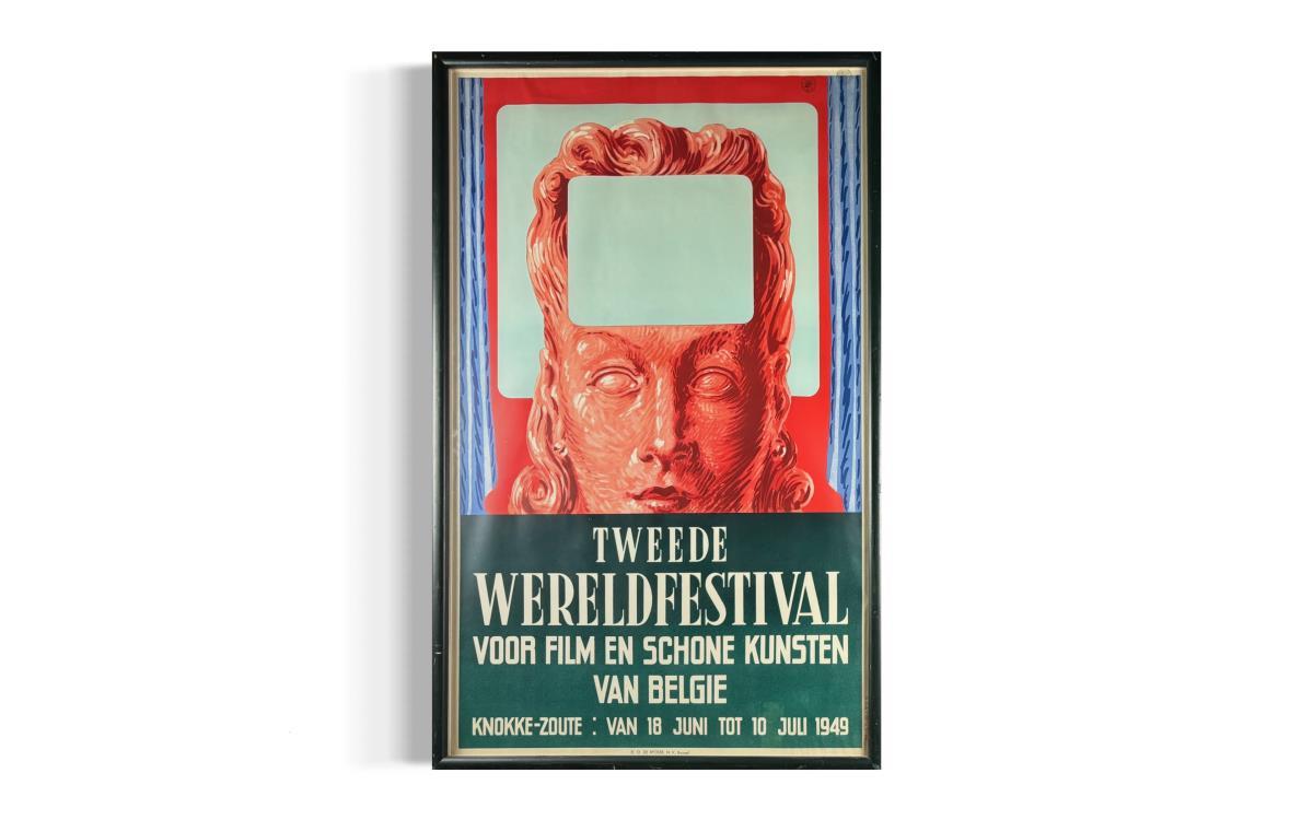 Originele affiche voor het festival voor film en schone kunsten in Knokke 1949 - Professioneel ingelijst - Gesigneerd in de plaat - Galerijprijs: 8500 122 x 78 cm