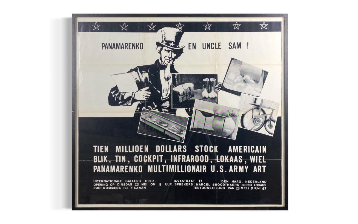 Originele affiche door Panamarenko - 'Panamarenko en Uncle Sam!' met gastsprekers Marcel Broodthaers en Berndt Lohaus - Zeer zeldzaam - Professioneel ingelijst - Galerijprijs: 2100
