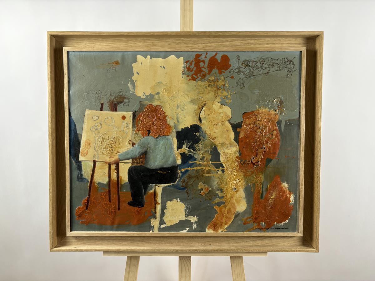 Origineel schilderij door Belgisch surrealist Roger Van De Wouwer - Professioneel ingelijst - Galerijprijs: 5500 80x65 cm