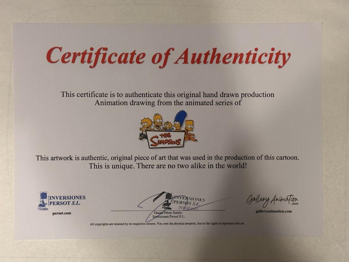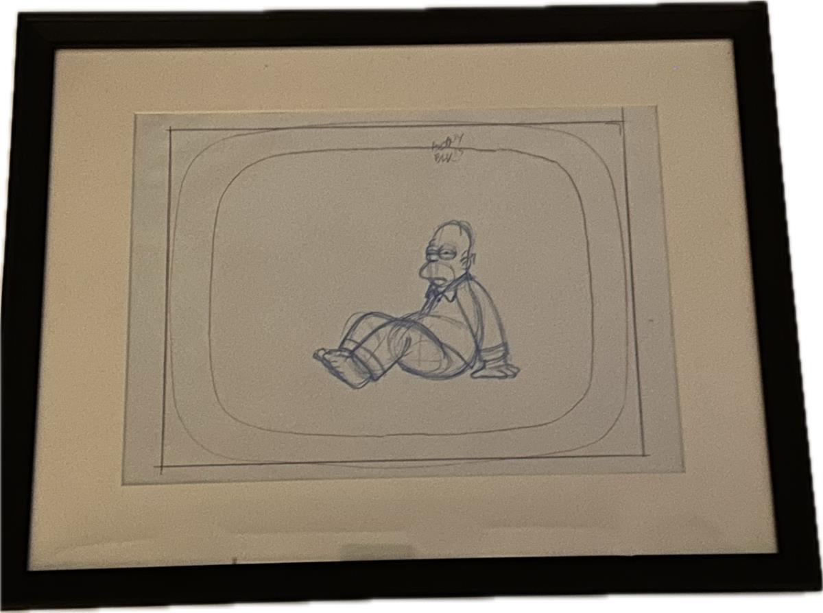 Originele tekening voor The Simpsons, galerieprijs 1500 euro, ingelijst