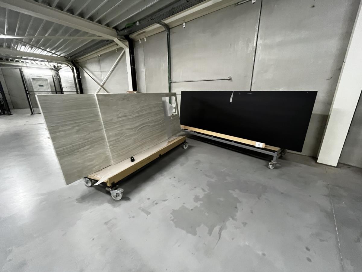 Kavelnummer 20: 2 Meubelkarren met inhoud TRAVERTIN LOOK BOVENBLAD