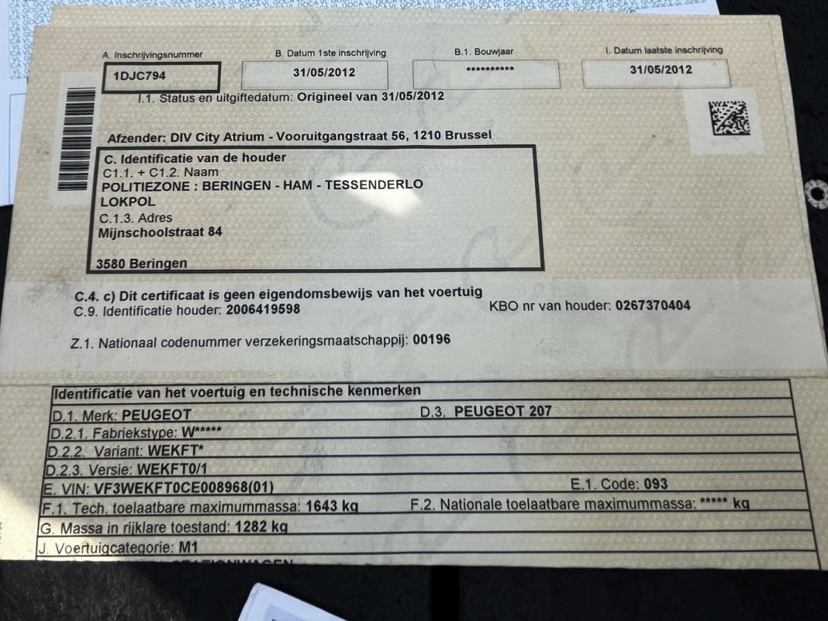 Kavelnummer 3: Peugeot 207, 2012 |
