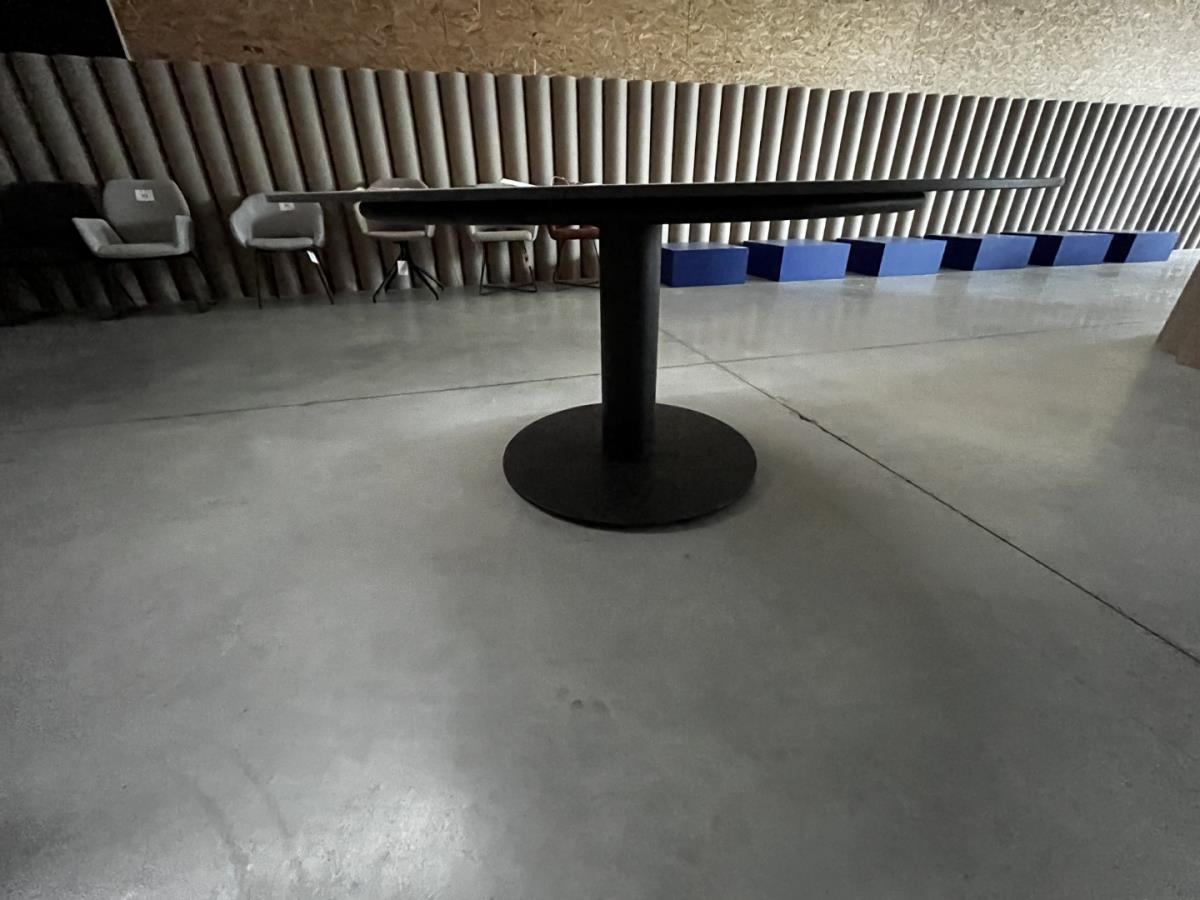 vv metalen onderstel en stenen blad, Dia 150cm H73cm