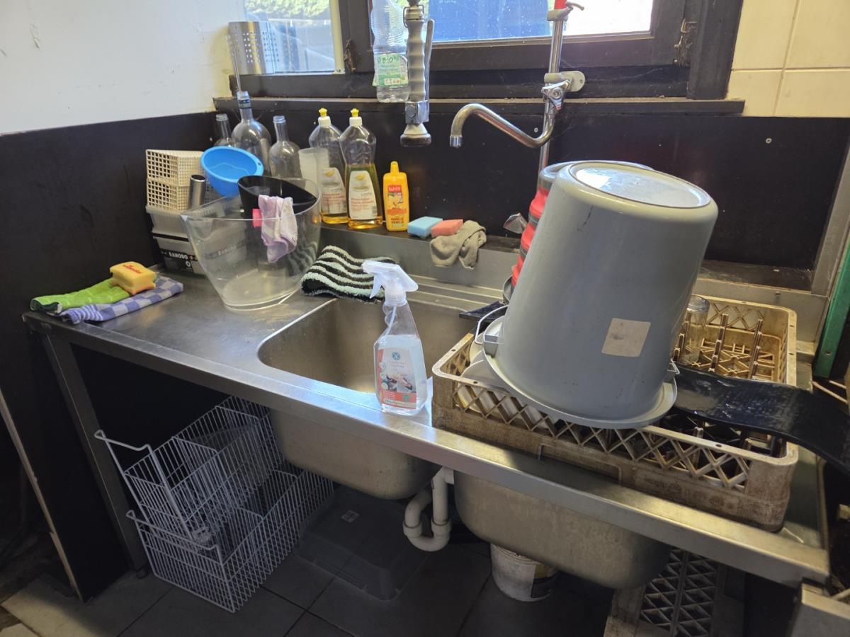 vv RVS Vaatwasser ETERNA incl 4 pvc bakken, RVS dubbele spoelbak vv handgreepkraan en afdruiprek, incl div schoonmaakmiddel
