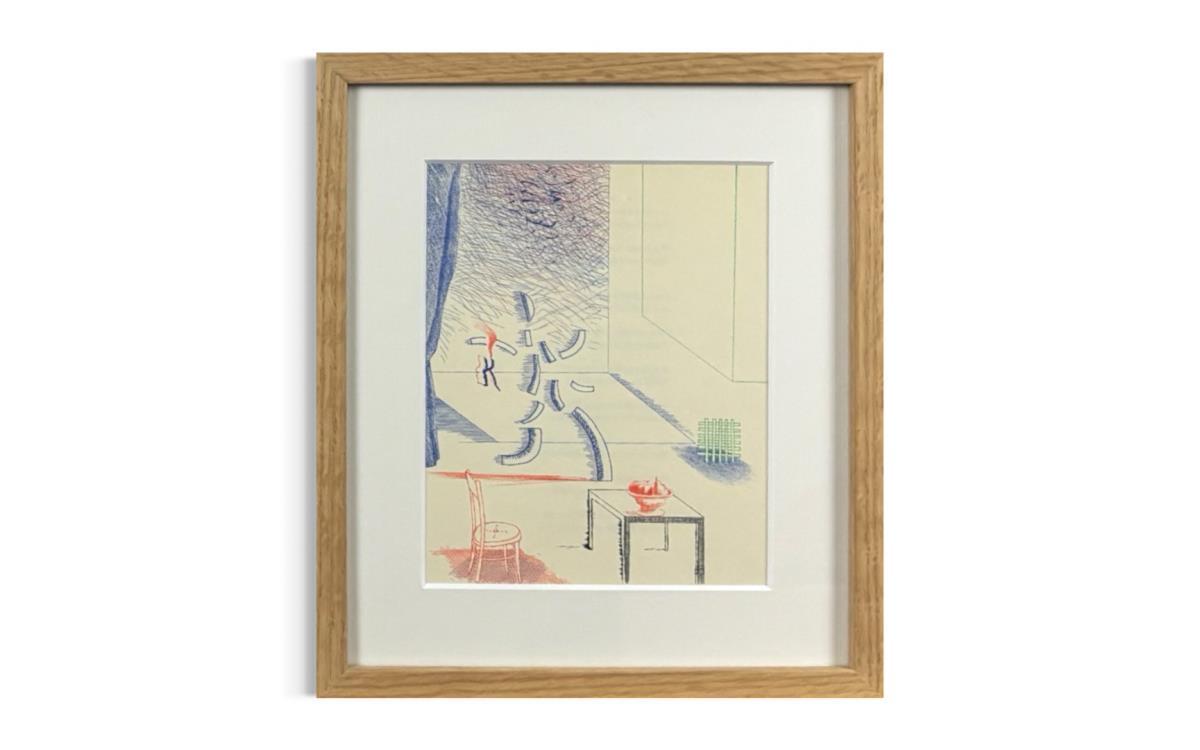 Lithografie uit 1977 door David Hockney - Professioneel ingelijst - Galerijprijs: 1250 25x28 cm