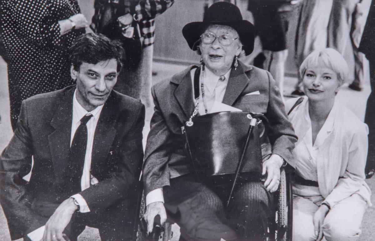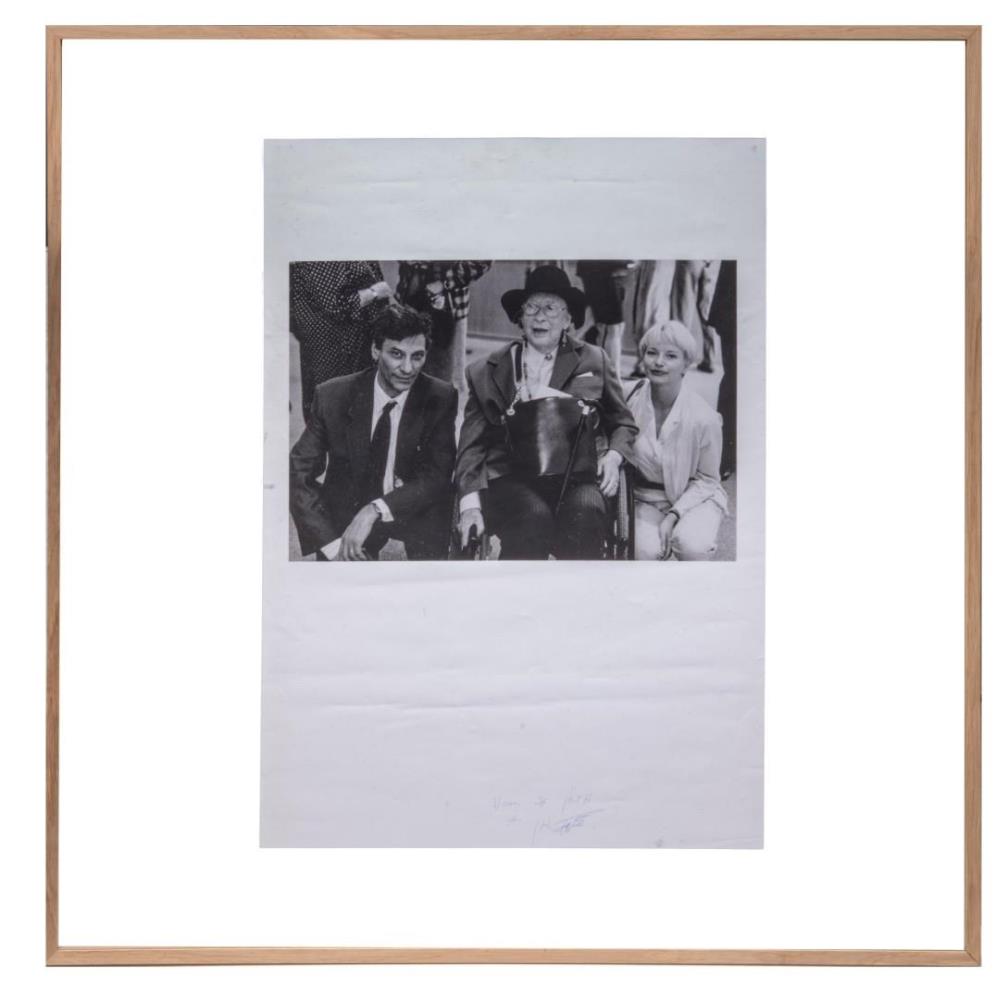 Foto opgedragen door Jan Fabre aan Jan Hoet - We zien Jan Hoet op de foto met de weduwe van Marcel Duchamp - Professioneel ingelijst - Herkomst: Collectie Jan Hoet - Galerijprijs: 2350 92x92 cm