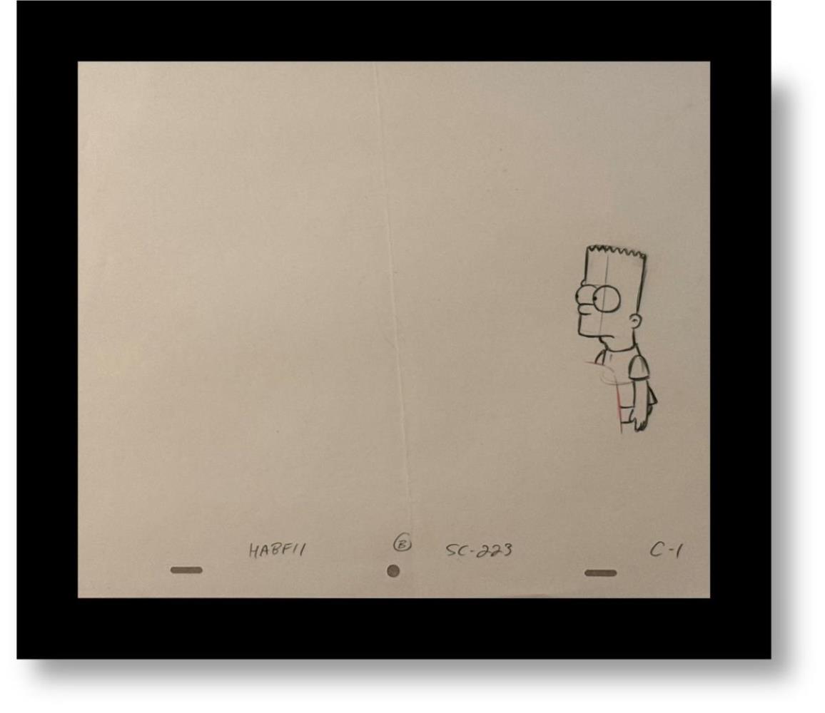 Originele tekening voor The Simpsons, galerieprijs 1500 euro, ingelijst, MET CERTIFICAAT