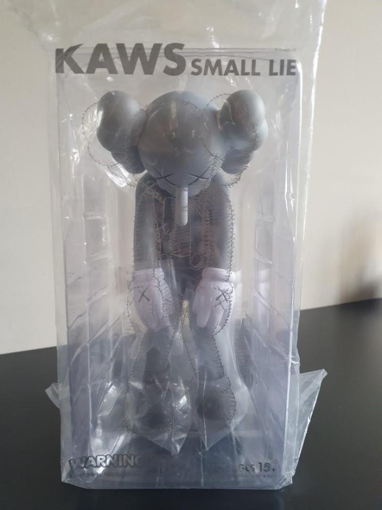 Kaws <br/z>Small Lie (Grey) <br/z>Object in kunsthars <br/z>20*30 cm <br/z>2017 <br/z>In originele verpakking - ONGEOPEND