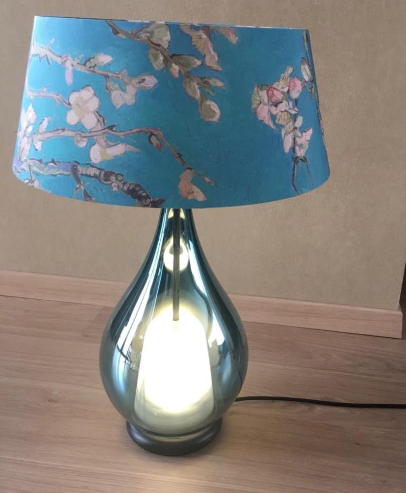Schemerlamp van zeer hoogstaande kwaliteit in handgeblazen glas met kap in design van Van Gogh.