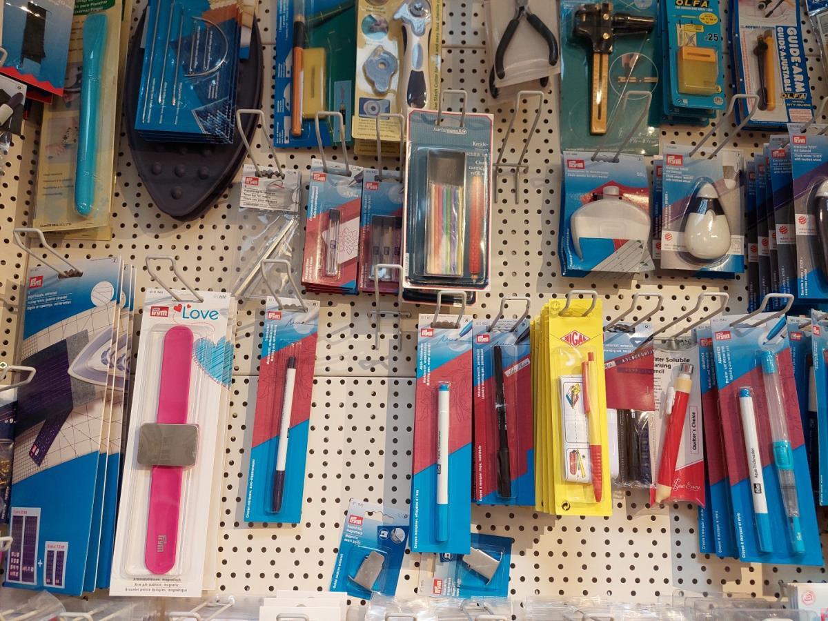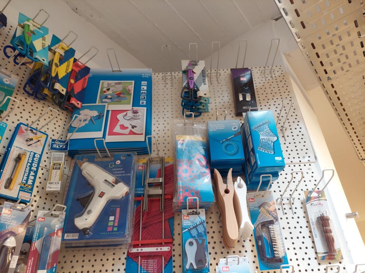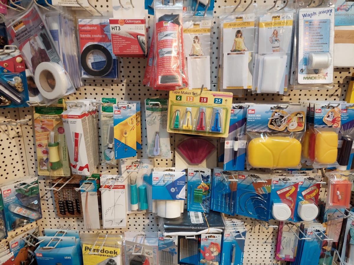 wo breipennen, bretellen, krijtpoeder, clipsen, lintmeters, lijmpistolen, tangen, scharen, pennen, drukknopen, linten, ea