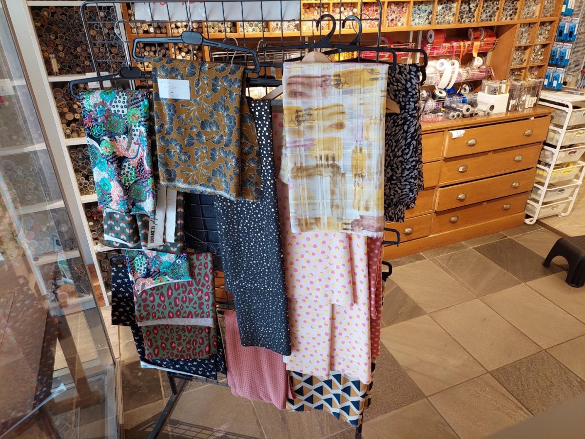 Verrijdbaar rek met stoffen