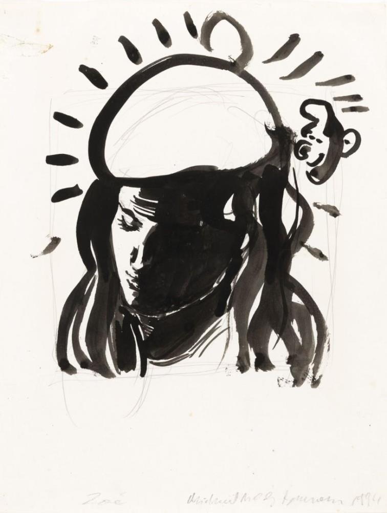 Originele Aquarel door Michael Borremans getiteld 'Zoë', geschatte waarde: 45000, afm plm: 32x25cm
