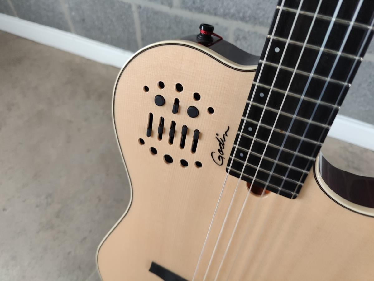 Lot number 204: 1 Akoestische- elektrische gitaar GODIN MULTIAC NYLON SA NATURAL HIGH GLOSS |