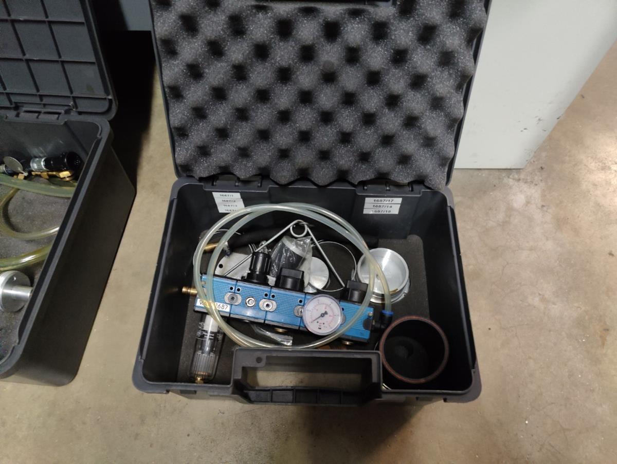 waaronder diverse drukmeters, adaptersets, e.a. Liggende in kast 16C