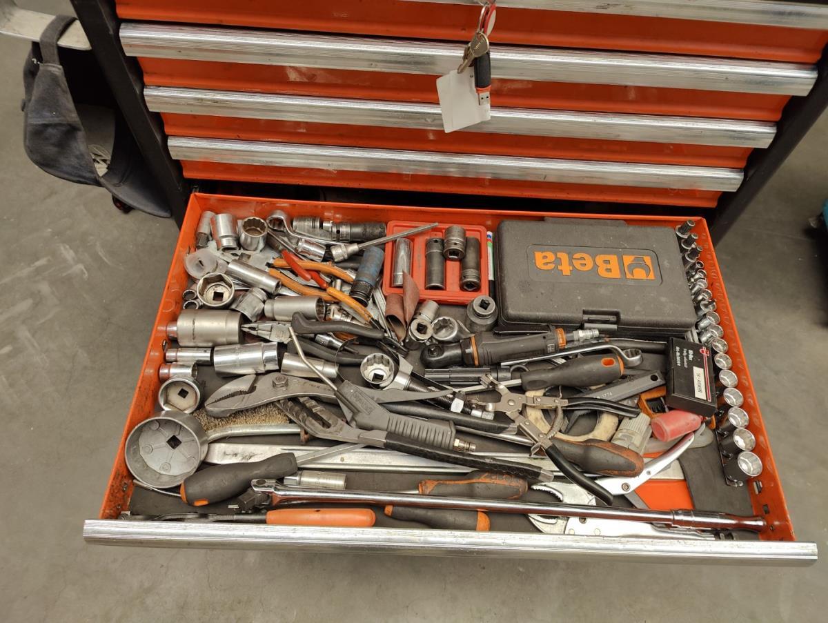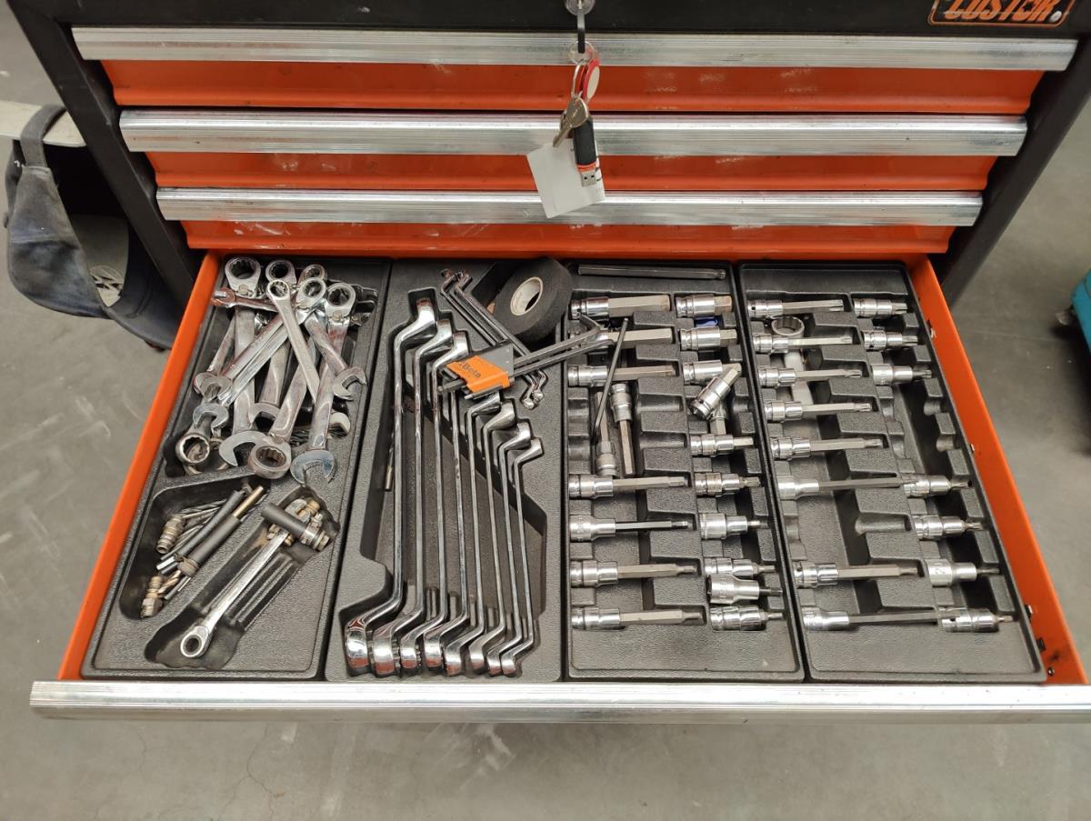 Voorzien van 7 gevulde laden inhoudende diverse handgereedschappen.