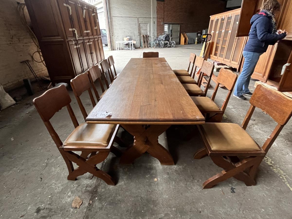 Lot number 163: 1 Houten Monniken tafel vv 11 Stoelen