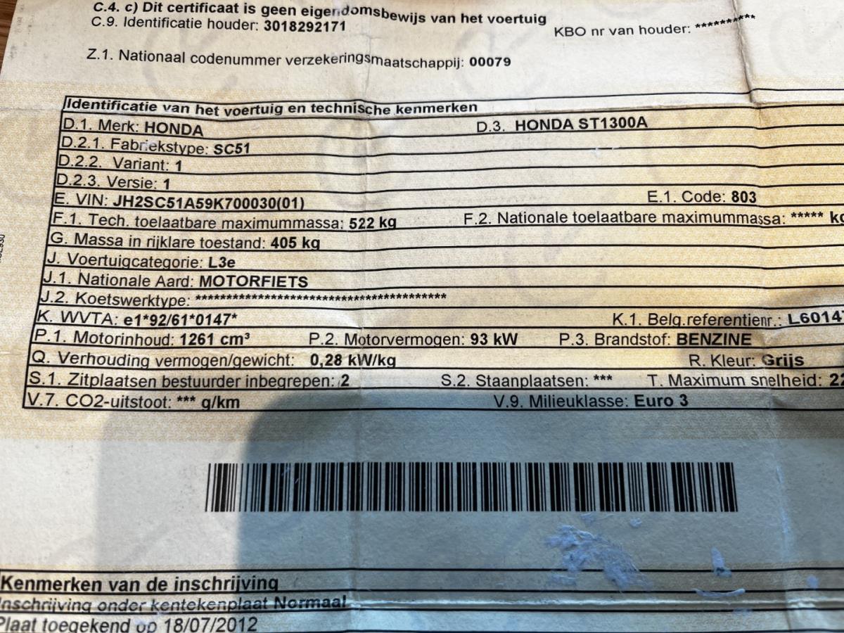 Lot number 3: Honda ST1300A, 2010