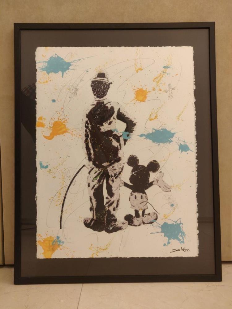Don Ken (After) Mickey Mouse & Charlie Chaplin : Witte achtergrond Datum : 2019 Lithografie getekend in de plaat
