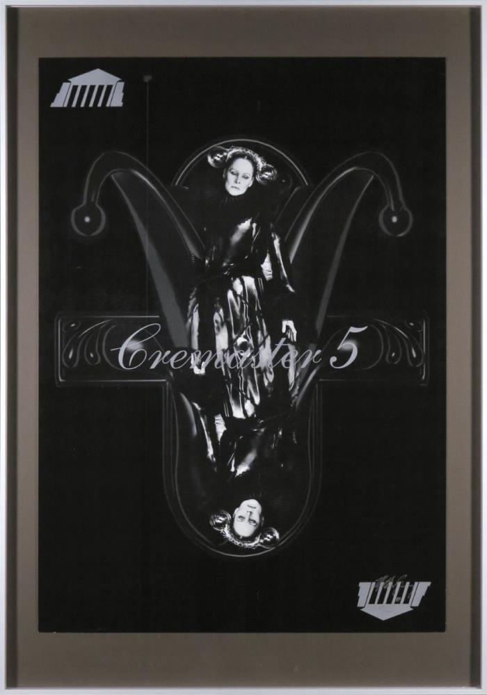 Zeefdruk ter gelegenheid van de laatst film voor Barney's magnus opus the Cremasters cicle, het werk toont een in zwart gehulde Ursula Andress, met een testikel-vormige hoofdtooi, gesigneerd, getaeerd en ingelijst, 100,5 x 70,5 cm