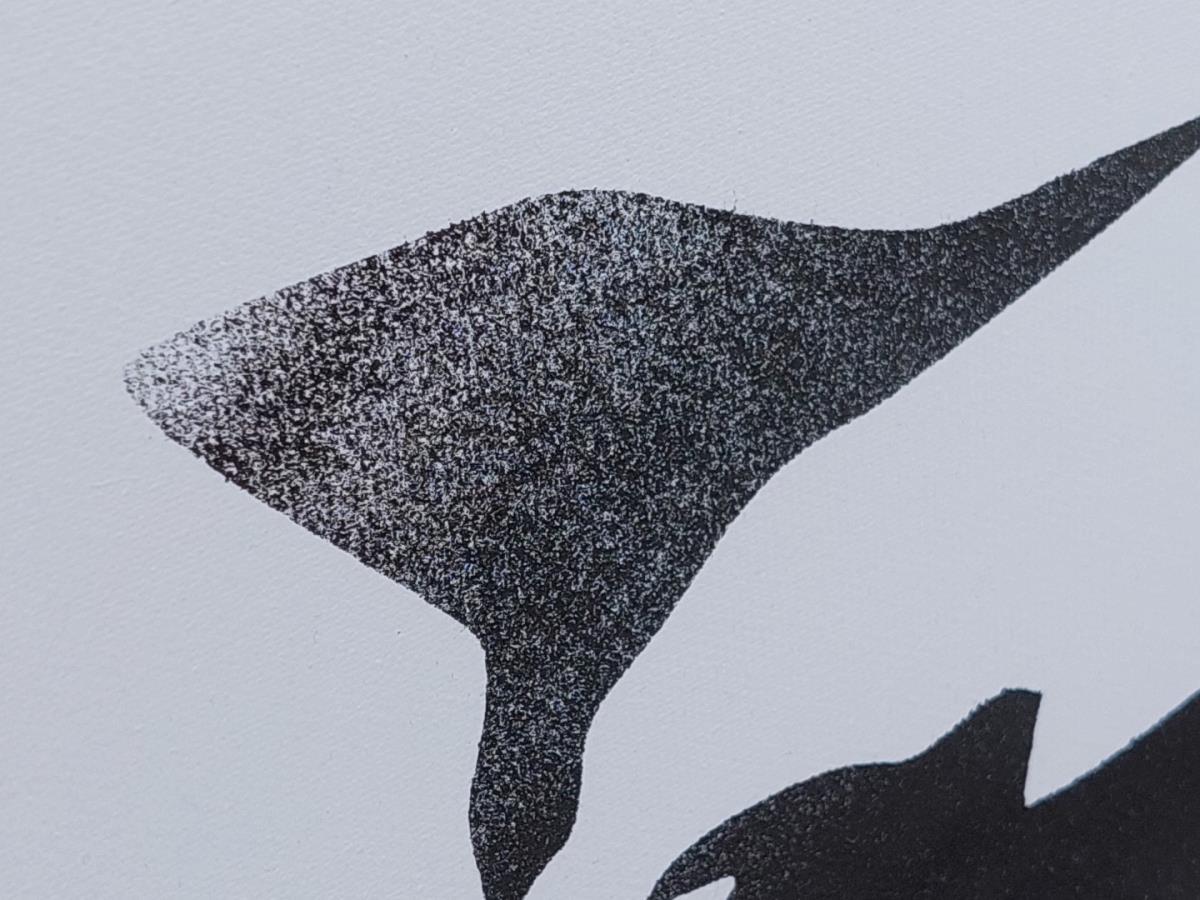 Het werk heeft zijn eigen texturen, druipt, verpulverde effecten, zodat die telkens weer bijzonder en uniek kan worden gemaakt.