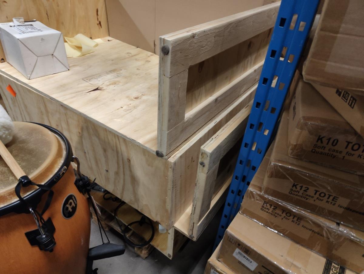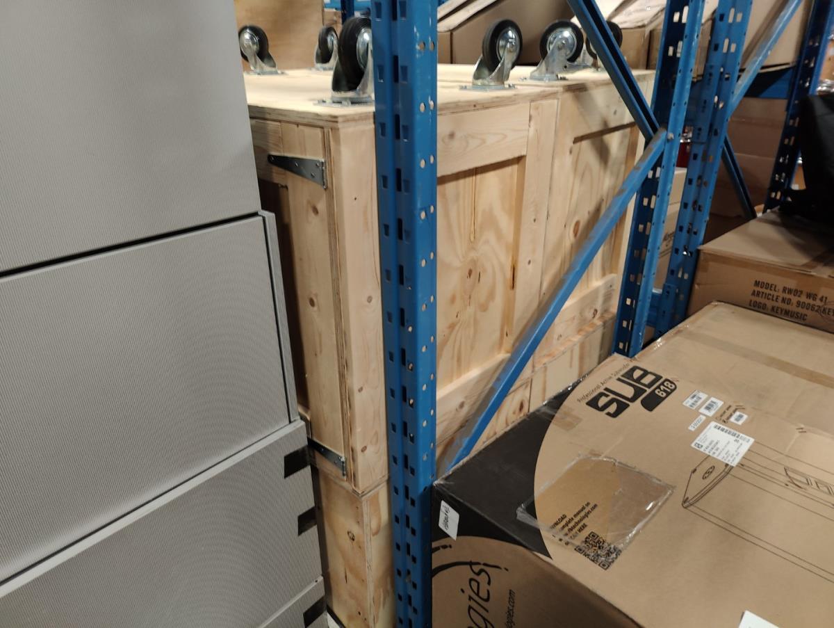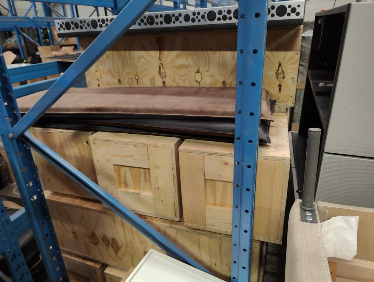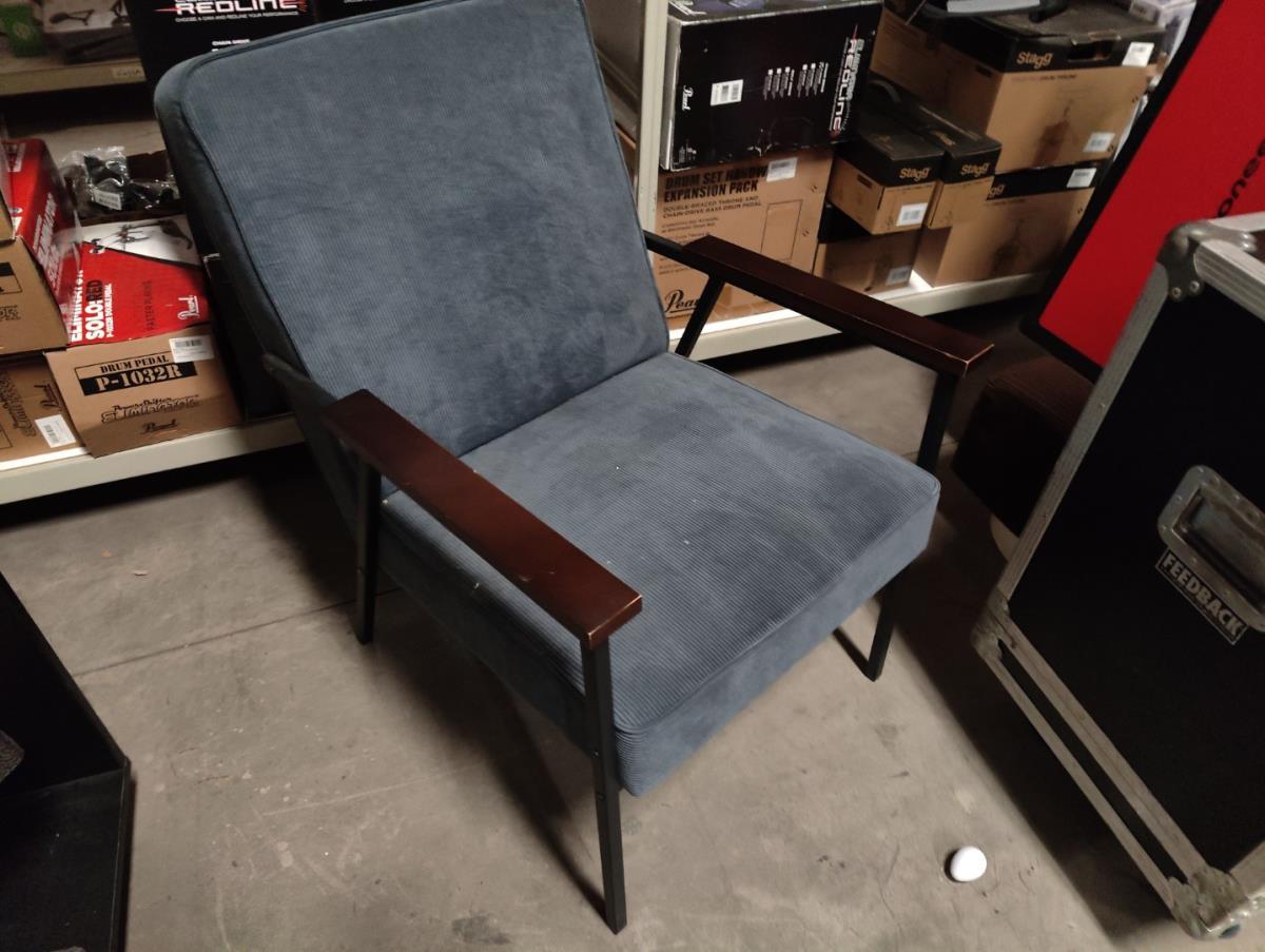 Bestaande uit: 2fluweel blauwe armstoelen, 1 houten bijzetstoel, 4 verrijdbare houten opbergkisten, 4 houten presentatie standen, 10stuks winkel meubilair grijs hout fineer, 10 houten presentatie standen, 9 niet verrijdbare houten kisten, 3 beige stoffe club stoelen. Afgifte volgens aanwijzing.