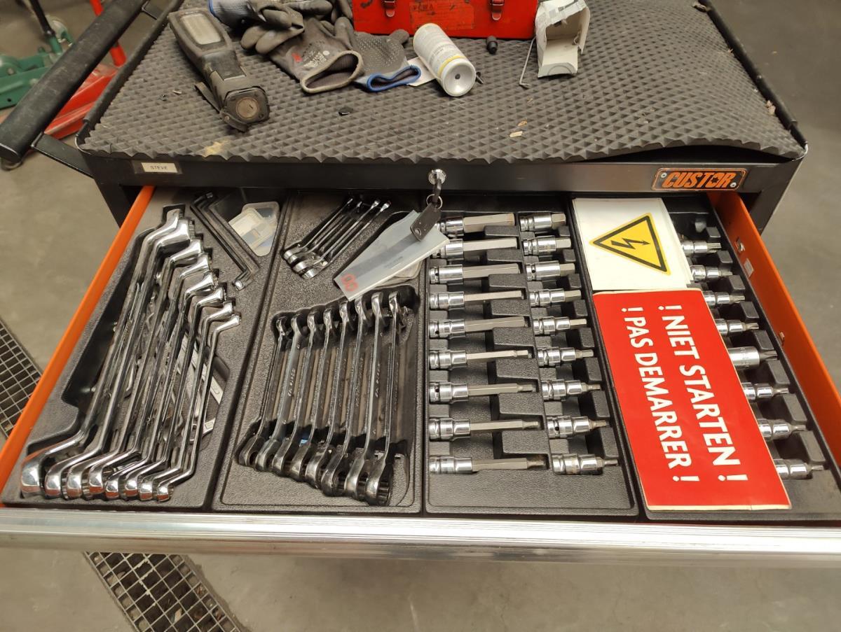 Voorzien van 7 gevulde laden inhoudende diverse handgereedschappen.