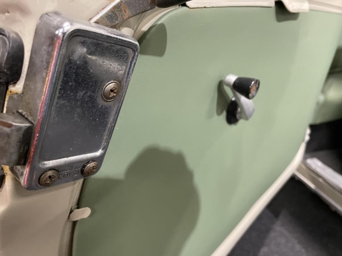 This 1964 Fiat has been fully restored and is in a beautiful combination of beige paint and pistachio green and beige interior.