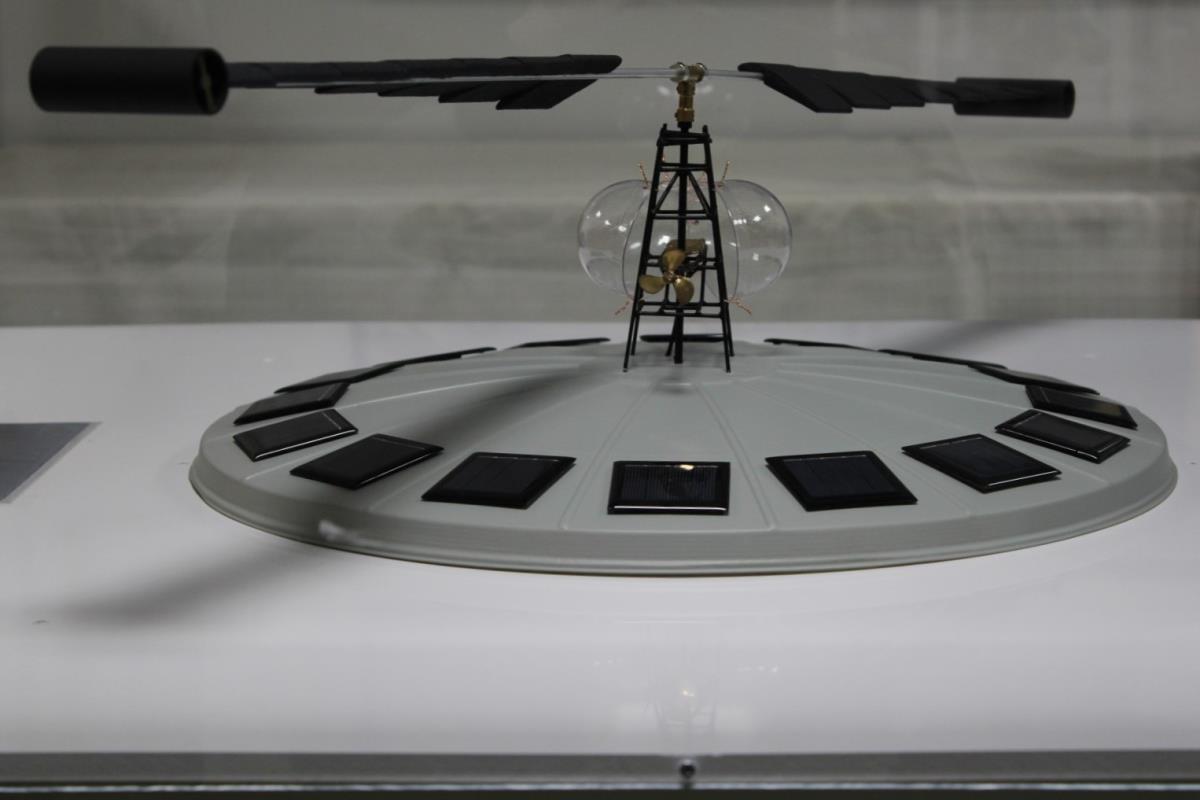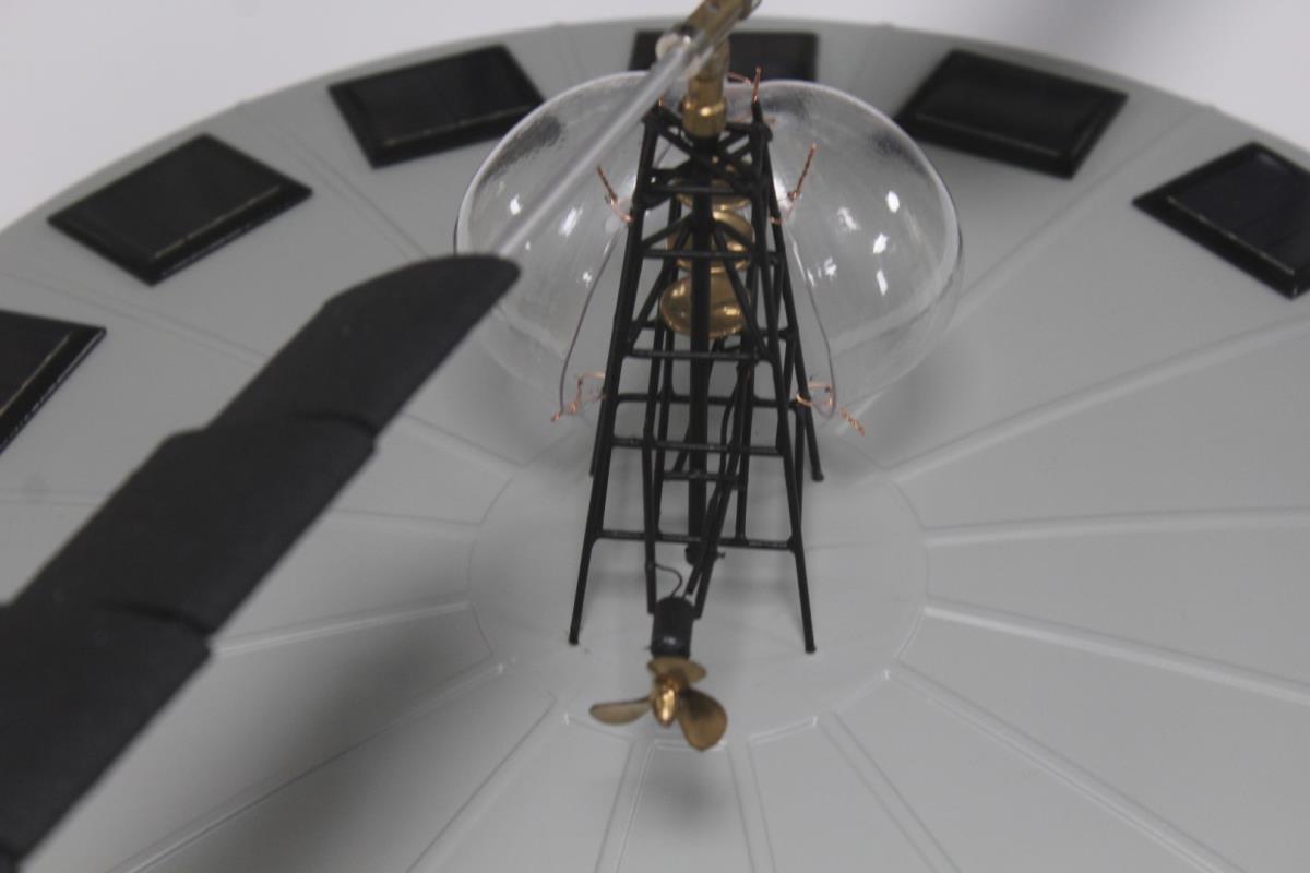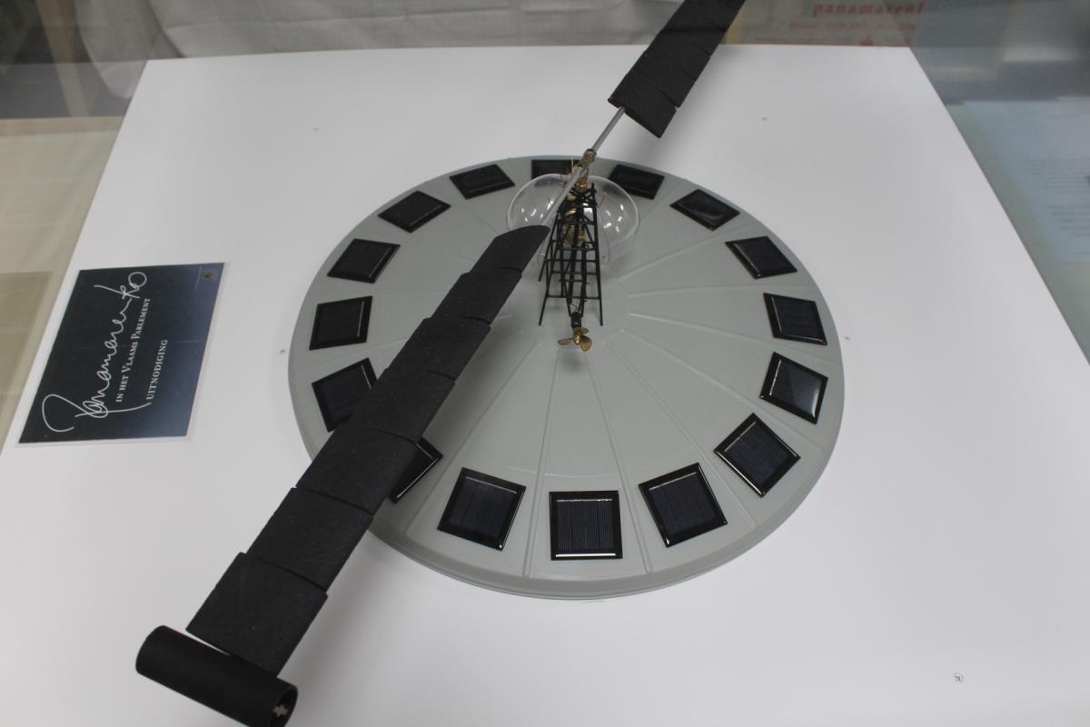 Eyecatcher - Werkend (zowel rotor als schroef roteren!) nieuw gemonteerd eiland – constructie van bouwdoos 284 ex - rotor zoals op plan 92 cm!! – state of the art montage, professioneel - incl. 16 zonnepanelen en batterijen backup - blauw led licht in koepel - ook werkend in hangende positie - duurzame snelheid - grote plexibox (100x100x40cm; 5mm dik) - van eerste eigenaar