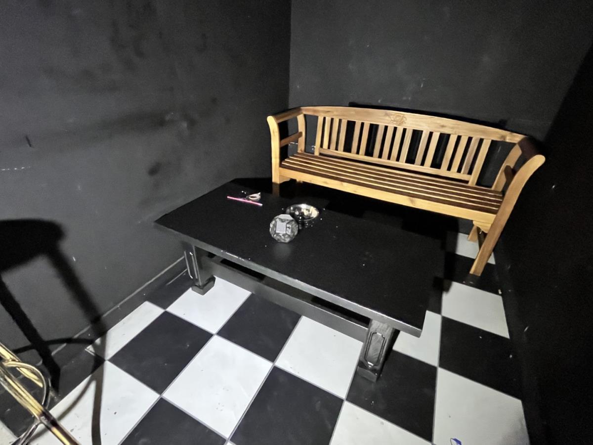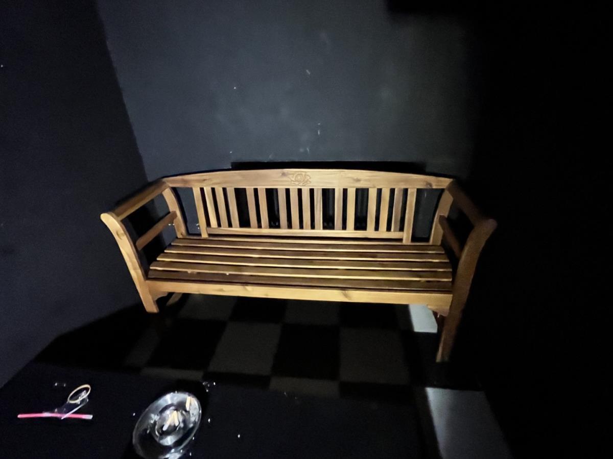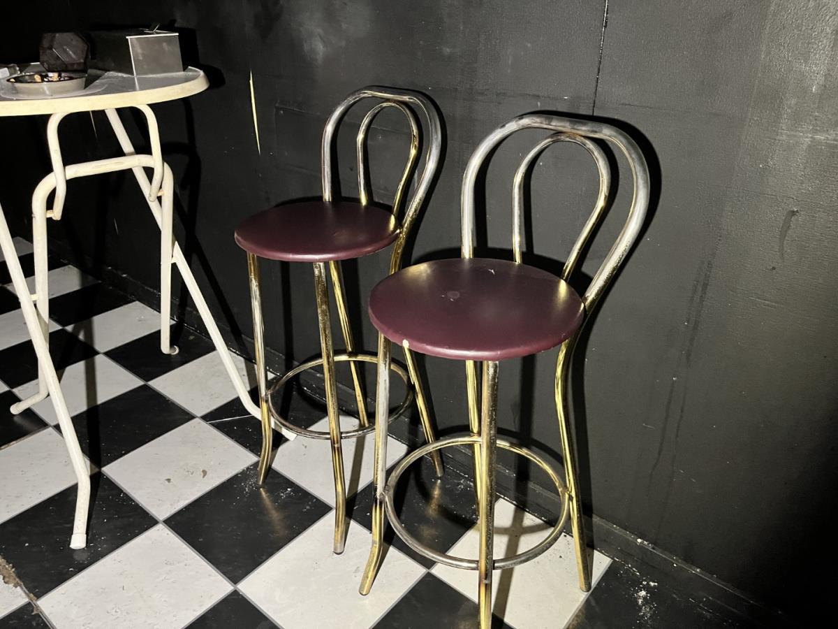 Bu barkrukken, staantafel, houten zitbank en salontafel
