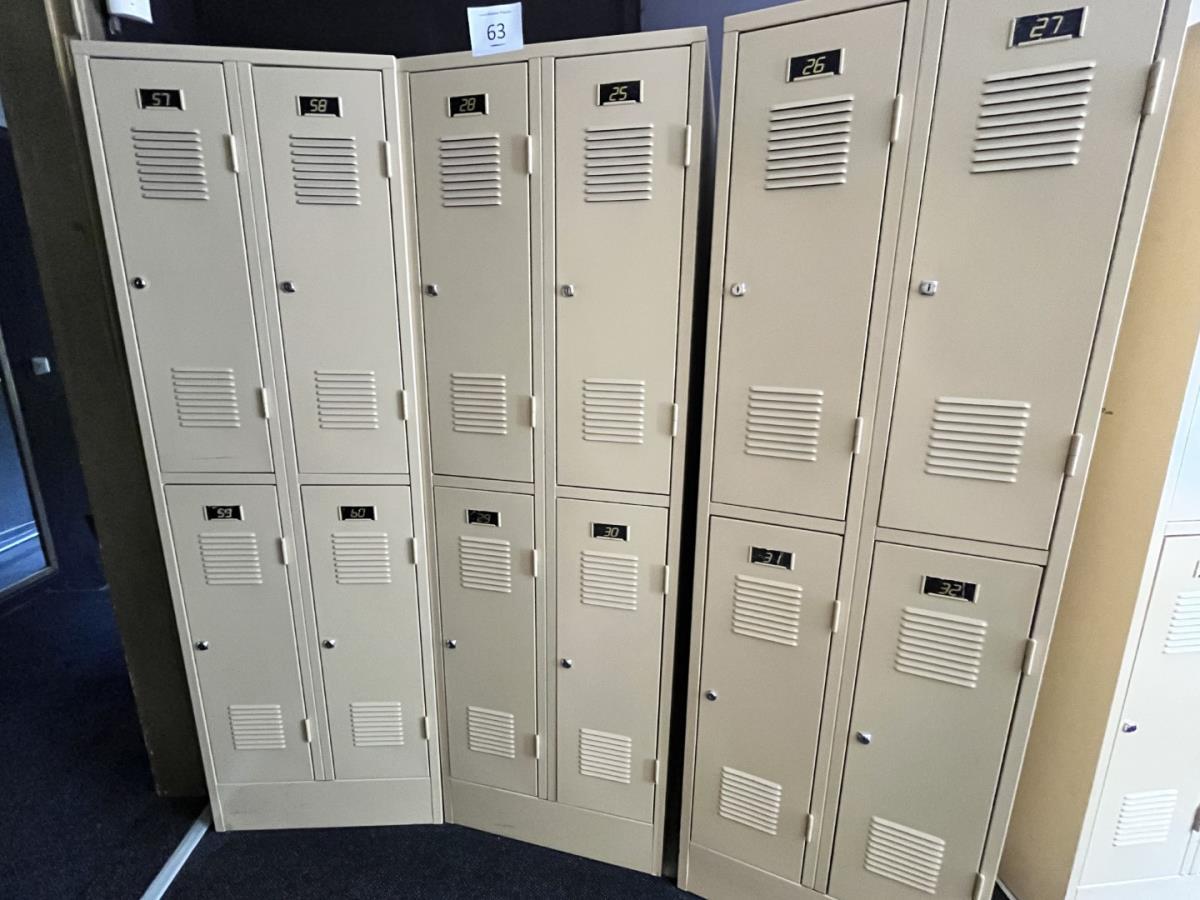 12 Lockers, 4/kast. Staat op 1ste verdiep, koper staat in voor het transport