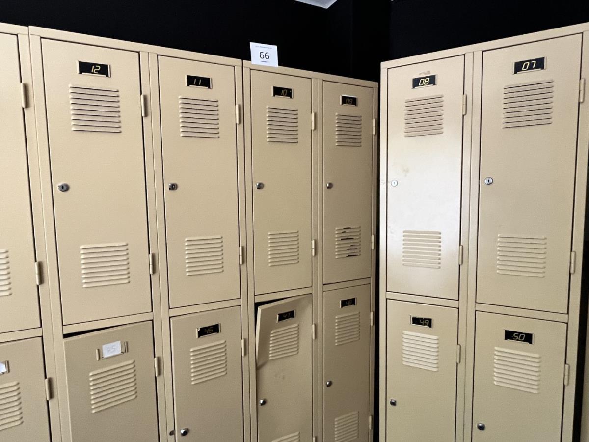 12 Lockers, 4/kast. Staat op 1ste verdiep, koper staat in voor het transport