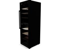 zwart met glazen deur (3-laags isolerend veiligheidsglas met UV filter) , 2 temperatuurzones, tot 180 flessen, 8 houten leggers waarvan 1 om uw beste wijnen te presenteren. Catalogusprijs is 2199