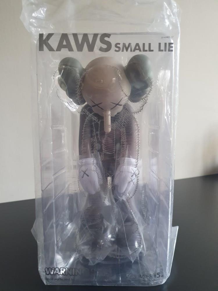 Kaws <br/z>Small Lie (Brown) <br/z>Object in kunsthars <br/z>20*30 cm <br/z>2017 <br/z>in originele verpakking - ONGEOPEND