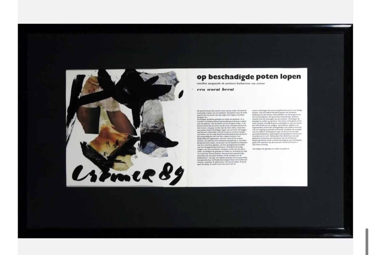 Collage met acryl op een tentoonstellingscatalogus