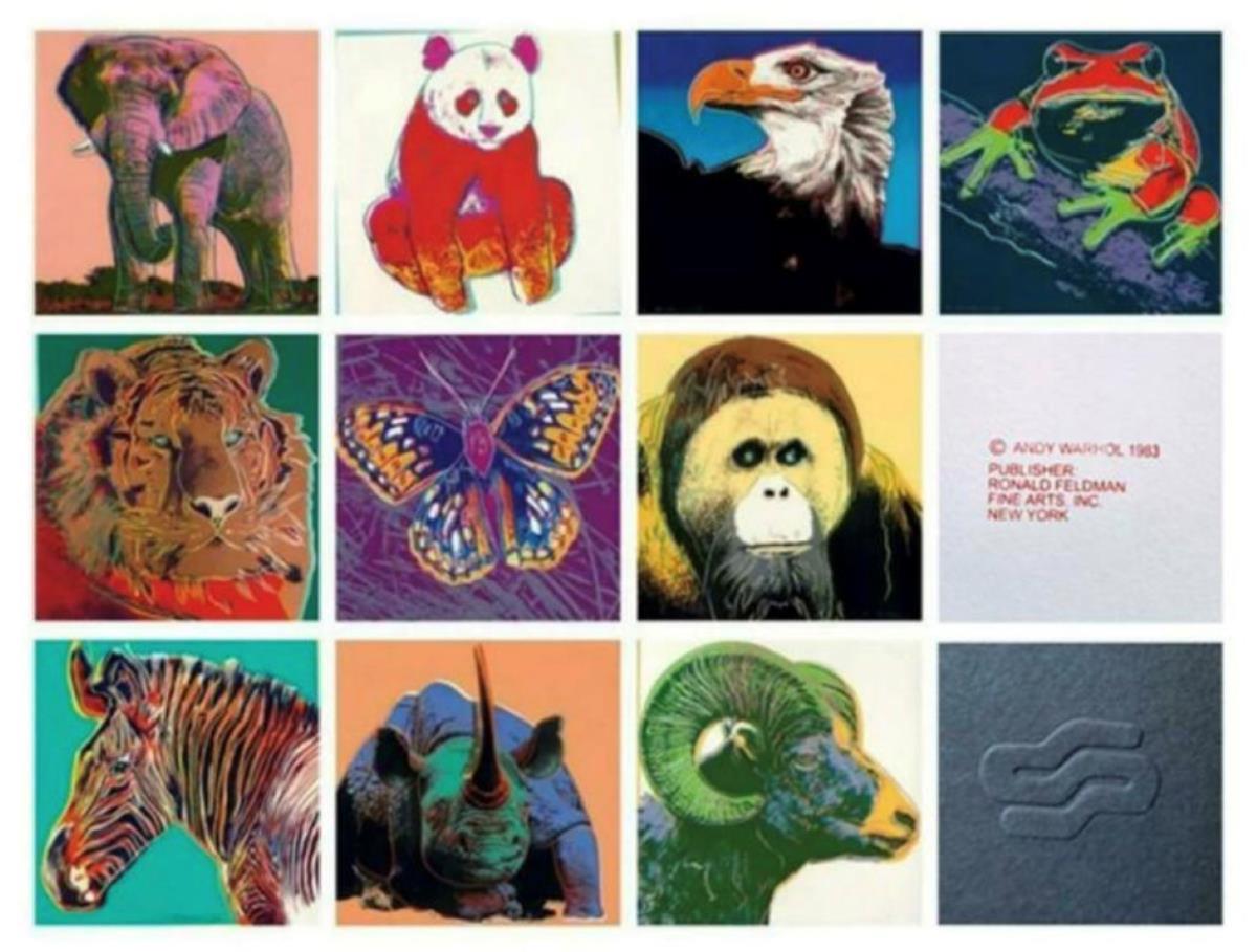 Species : ORANGUTAN/SIBERIAN TIGER/PINE BARRENS TREE FROG/BLACK RHINO/GREVY'S ZEBRA/AFRICAN ELEPHANT/SILVERSPOT BUTTERFLY/GIANT PANDA/BALD EAGLE/BIGHORN RAM (10 stuks)