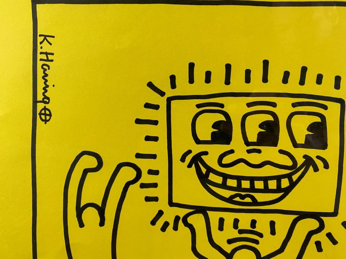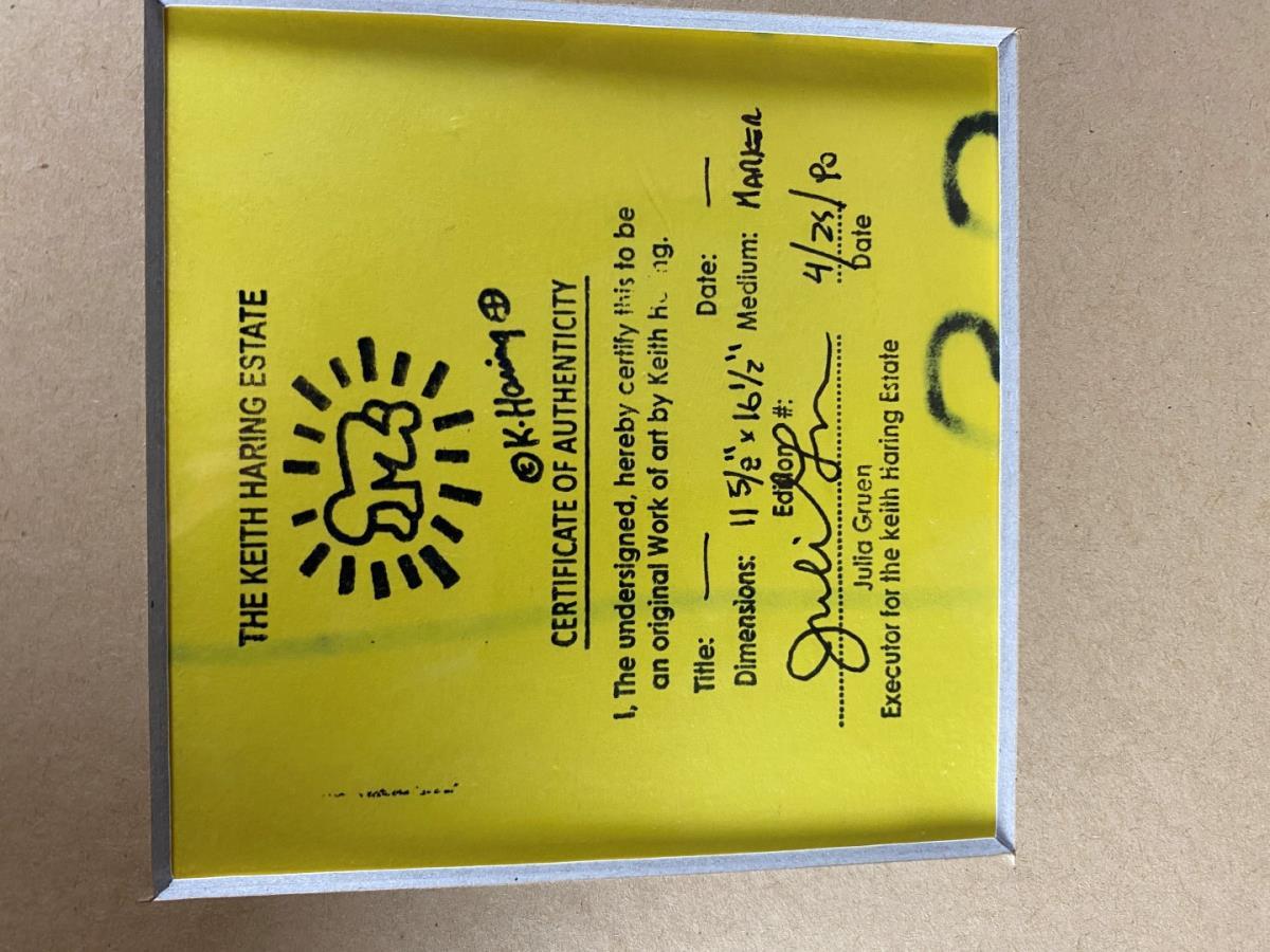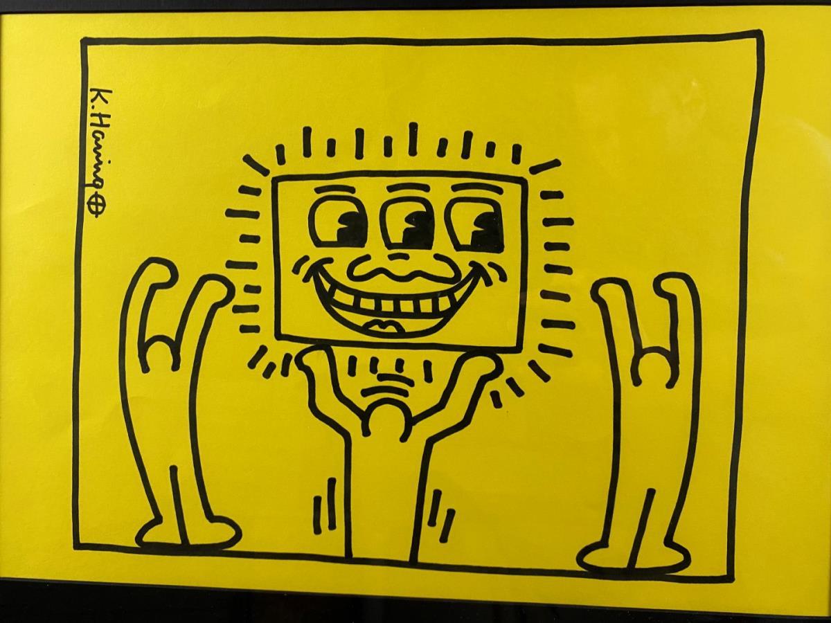 Originele Tekening Keith Haring op Geel Papier - Met certificaatstempel van de foundation, geschatte waarde: 37500, afm plm: