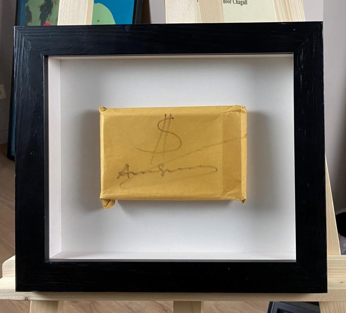 Origineel object met tekening en signatuur door Andy Warhol, geschatte waarde: 9500, afm plm: 34x39cm