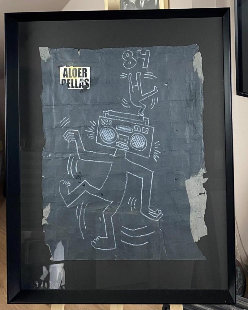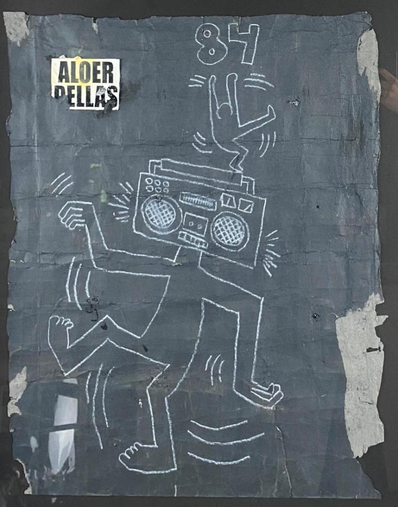 Originele Tekening Keith Haring gemaakt in de metro in New York ca. 1982, geschatte waarde: 35000, afm plm: 68x50cm